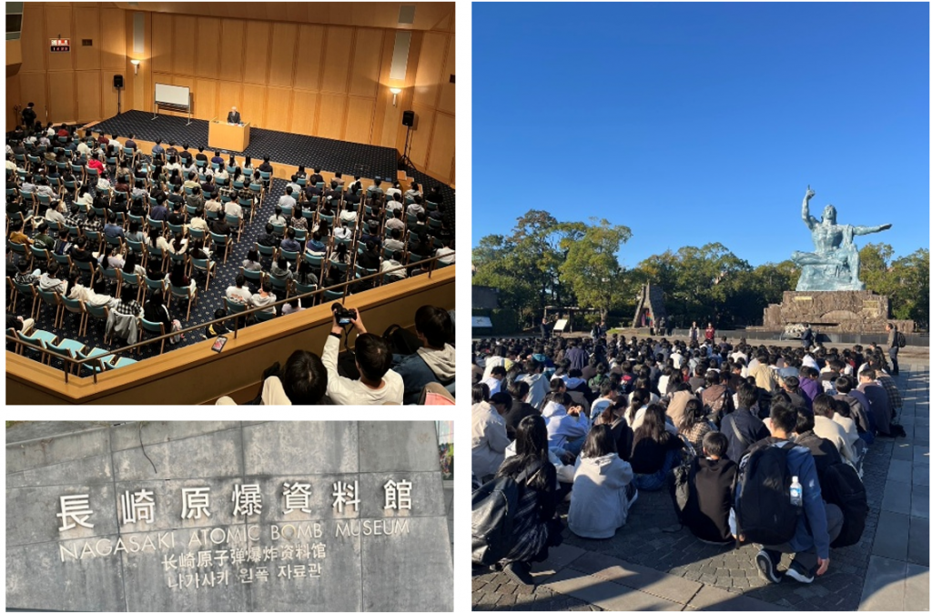 2025年10月29日(水) ~31日(金) に修学旅行で長崎県に来ています。一日目は、長崎の原爆投下で被爆された方から、ご自身の体験を伺いました。その後、長崎平和公園で黙とうを捧げ、長崎原爆資料館を観覧しました。戦争の悲惨さを学び、平和の尊さを再認識する一日となりました。