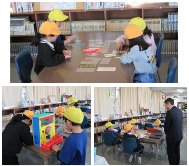 お知らせ 渋川小学校2年生来校 2025年11月14日 11月14日(金) 渋川小学校2年の児童4人が、生活科「もっとなかよしまちたんけん」の授業で見学に来ました。図書館では、館内の見学、質疑応答のほか、しおりづくりやカプセルトイなどで楽しんでもらいました。