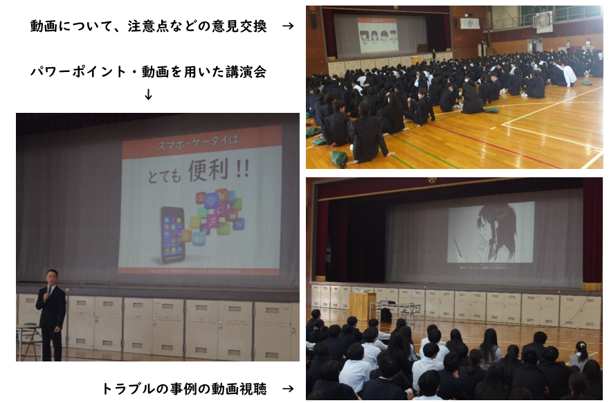 4月20日(月)7限に「情報モラル・セキュリティ講座」を実施しました。「スマホ・ケータイ安全教室」と銘打ち、1年生全員でKDDI株式会社のスペシャリストを講師として招き講演会を聞きました。 SNSに関わる具体的なトラブルの事例(①他人の画像をSNSにあげる②推し活の金銭トラブル③不適切なポイ活)の動画を視聴し、近くの人同士で意見交換をする活動を通して、安全で安心なネットワーク社会を構築し、生徒がサイバー犯罪の被害者や加害者にならないようにルールやマナーの再確認をしました。